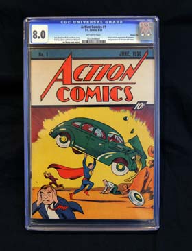 美國漫畫收藏家們今年以來頻頻出手,繼2月份兩次刷新單本漫畫拍賣紀錄后,3月29日,一本保存極為完好的超人漫畫首發(fā)刊拍出150萬美元高價。 這本1938年版《動作漫畫》第一期29日在拍賣網(wǎng)站www.comicconnect.com上以150萬美元成交。拍賣網(wǎng)站所有者斯蒂芬·菲什勒說,這本漫畫在網(wǎng)站上發(fā)布數(shù)分鐘后,即被名為“鐵桿漫畫粉絲”的買家以150萬美元拍下。 這本首發(fā)刊標志著身穿藍色緊身衣、披紅色斗篷、胸前印有S標記的超人形象首次面世。同一版本的超人漫畫曾在2月份拍出100萬美元高價。幾天后,標志著蝙蝠俠誕生的1939年第27期《偵探漫畫》拍得107.55萬美元。 業(yè)內(nèi)人士估計,目前該版本超人漫畫僅存約100本,但保存情況良好的為數(shù)不多。此次拍出的這本漫畫保存得相當好,比2月份拍出百萬美元的同版本評級還要高。 據(jù)拍賣網(wǎng)站介紹,它此前被夾在一本舊電影雜志內(nèi),半個世紀后才在匹茲堡的一場舊貨拍賣中被人們發(fā)現(xiàn)。 這本漫畫當年發(fā)行時售價僅為10美分。