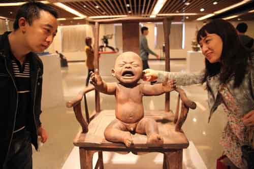 日前,為期5個(gè)月的國粹苑·國粹藝術(shù)“銀行”全球創(chuàng)意節(jié)在北京開幕,眾多價(jià)值連城的收藏品集中亮相,期間將舉行盛世中華收藏展、中外藝術(shù)學(xué)院優(yōu)秀雕塑作品展、第十六屆國際雕塑論壇、“意大利、法國、日本、韓國”四國國際藝術(shù)展等一系列活動(dòng)。 圖為在北京舉行的國粹藝術(shù)“銀行”全球創(chuàng)意節(jié)上,一組雕塑作品吸引了兩名參觀者的目光。新華社發(fā)