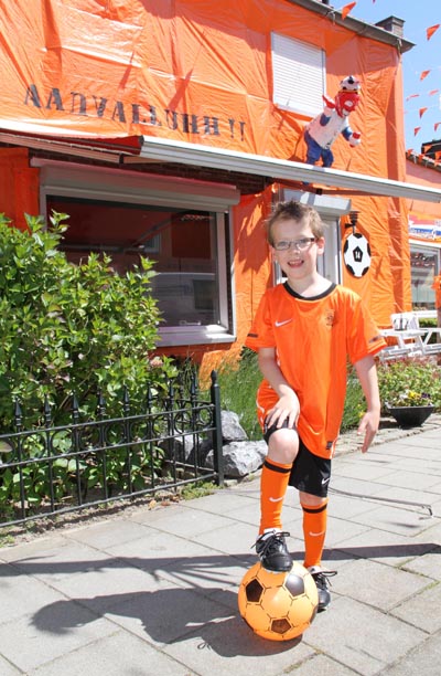 荷蘭隊(duì)在本屆世界杯中的首場(chǎng)賽事將于14日當(dāng)?shù)貢r(shí)間下午1點(diǎn)半開始。為了避免錯(cuò)過收看比賽,荷蘭學(xué)校、企業(yè)等紛紛調(diào)整工作時(shí)間。不僅如此,荷蘭民眾還紛紛用屬于荷蘭王室的橙色將自己打扮起來(lái),“全民皆橙”,甚至于在荷蘭南部小鎮(zhèn)霍爾勒,當(dāng)?shù)鼐用駥⒁徽麠l街道都裝扮成了橙色。記者 潘治/海牙報(bào)道
