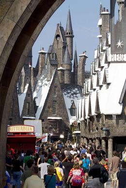 美國娛樂產(chǎn)業(yè)領(lǐng)域的經(jīng)濟(jì)專家哈羅德·沃戈?duì)柗Q,環(huán)球影城的客源因經(jīng)濟(jì)危機(jī)來襲后銳減,急需新的刺激點(diǎn)。 2009年奧蘭多環(huán)球影城的游客量較前一年下降了10%,降至550萬人;而較新的冒險(xiǎn)島部分游客量情況更糟,下降了11%,降至460萬人。與此同時,影視城中相關(guān)的食物、飲料和其他商業(yè)產(chǎn)品的銷量在2007年至2009年間急劇下降了近20%。長時間沒有新的投資使得環(huán)球影城越來越無法和同樣處于奧蘭多的迪斯尼游樂園競爭。 在這樣的情況下,環(huán)球自2002年便與華納協(xié)商哈里·波特主題公園的版權(quán)事宜,希望將哈里·波特主題公園落戶于環(huán)球影城,并希望通過哈里·波特風(fēng)靡全球的“魔法”,將年游客量增加至少10%。 哈里·波特系列小說自出版以來,在短短13年里,已為作者J.K