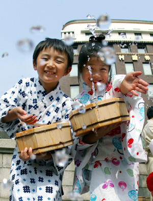 7月中旬,陰雨連綿的梅雨季結(jié)束了,日本迎來(lái)了酷熱難耐的盛夏時(shí)節(jié)。應(yīng)對(duì)酷暑,日本人自有良方,有的甚至演變成了傳統(tǒng)民俗活動(dòng)。 灑水是日本以前夏季降溫的主要手段。東京都淺草地區(qū)的灑水活動(dòng)有著悠久歷史,在盛夏時(shí)節(jié),淺草居民會(huì)一起手持水桶或水盆,上街灑水,達(dá)到降溫的效果。日本的“灑水大作戰(zhàn)本部”就設(shè)立在淺草,灑水活動(dòng)已擴(kuò)大到全國(guó),從大暑到處暑的一個(gè)月間,日本全國(guó)會(huì)有700多萬(wàn)人上街灑水。灑水大作戰(zhàn)是為了解決地球溫室化和城市熱島效應(yīng)問(wèn)題,目標(biāo)是把城市溫度降低兩攝氏度,F(xiàn)在,東京一些公共場(chǎng)所也會(huì)從屋頂往下噴灑水霧,達(dá)到降溫的效果。 在窗外放置簾子也是日本夏季傳統(tǒng)的避暑方法。簾子有各種樣式,包括懸掛的,立式的等等,一般是竹簾或葦簾。傳統(tǒng)日式木造住宅在夏季往往會(huì)擺放高過(guò)屋檐的立式葦簾,把住宅南邊整個(gè)遮蔽起來(lái),使室內(nèi)格外清爽。不過(guò)在現(xiàn)代的鋼筋混凝土建筑中,傳統(tǒng)的簾子則比較少見(jiàn)了。 風(fēng)鈴則是日本夏季的“風(fēng)景詩(shī)”,風(fēng)鈴清脆的叮咚聲會(huì)使人感覺(jué)到風(fēng)的吹拂,從而產(chǎn)生一絲涼意,這是通過(guò)聽(tīng)覺(jué)來(lái)達(dá)到避暑效果。在銀座這樣的繁華之地,也會(huì)有貨郎挑著挑子,出售各種風(fēng)鈴。東京附近川崎市平間寺的風(fēng)鈴節(jié)是日本最大規(guī)模的風(fēng)鈴節(jié),7月18日開(kāi)幕,將持續(xù)到21日。900多種、數(shù)萬(wàn)個(gè)風(fēng)鈴遍布寺內(nèi),盛況空前。 夏季人們往往食欲不振,身體能量流失快,而日本人夏季特別講究吃鰻魚。鰻魚營(yíng)養(yǎng)豐富,美味可口,享受鰻魚飯可以免除“苦夏”之憂。 日本人酷愛(ài)養(yǎng)花種草,整個(gè)東京也看不到多少黃土露天的地方。種植綠色植物不僅是日本人的愛(ài)好,也是一個(gè)避暑的手段,因?yàn)榫G色植物從視覺(jué)上給人清爽的感覺(jué)。日本很多地方都種植爬山虎等爬藤植物,既擴(kuò)大了綠化面積,也降低了室內(nèi)溫度。此外,日本校園正在大力實(shí)現(xiàn)草坪化,即把整個(gè)校園操場(chǎng)都鋪滿草坪。草坪能夠減少積水,減輕熱島效應(yīng),目前東京都的155所公立中小學(xué)校都建成了草坪操場(chǎng)。 日本傳統(tǒng)的三大避暑勝地包括輕井澤、高山和野尻湖,分別以山、海、湖見(jiàn)長(zhǎng)。富士五湖、箱根、那須、六甲山等地也都是避暑勝地。此外,日本是個(gè)群島國(guó)家,風(fēng)景優(yōu)美的海灘眾多,而且這些沙灘都是免費(fèi)對(duì)市民開(kāi)放的。由于空調(diào)的普及,去避暑地的意義已經(jīng)大大減輕。不過(guò)隨著建設(shè)低碳社會(huì)意識(shí)的增強(qiáng),現(xiàn)在日本人又開(kāi)始重視去避暑地避暑這一低碳生活方式了。盛夏時(shí)節(jié),人們紛紛擁到海灘,通過(guò)海水浴來(lái)避暑,不少沙灘都淹沒(méi)在遮陽(yáng)傘下,從空中鳥瞰,千萬(wàn)頂遮陽(yáng)傘蔚為壯觀。 盛夏也是日本民俗活動(dòng)眾多的時(shí)節(jié)。神奈川縣茅崎的抬神轎入海儀式就非常著名,眾多游客也能趁機(jī)洗個(gè)海水浴,緩解一下酷熱。而在盂蘭盆節(jié)期間舉行的盂蘭盆舞會(huì),更是夏季最為盛大的活動(dòng)。盂蘭盆舞會(huì)一般在晚上舉行,也是為了能讓市民享受夜晚的涼風(fēng)。日本各地都會(huì)搭起高臺(tái),懸掛起燈籠,一些領(lǐng)舞者站在高臺(tái)上,然后市民環(huán)繞高臺(tái),可以圍成幾個(gè)圓圈,伴隨著音樂(lè)翩翩起舞,是日本盛夏一道著名的風(fēng)景。 |