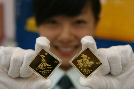 為迎接廣州亞運(yùn)會開幕,8月4日,廣州亞運(yùn)會開幕倒計(jì)時100天,經(jīng)中國郵政集團(tuán)公司批準(zhǔn),第十六屆亞洲運(yùn)動會組委會授權(quán),中國集郵總公司特別發(fā)行《第16屆亞洲運(yùn)動會會徽和吉祥物郵票金磚》一套兩枚,每枚25克,統(tǒng)一編號CJ.P-4,以此為弘揚(yáng)“激情盛會、和諧亞洲”的主題貢獻(xiàn)力量,同時也為滿足廣大民眾紀(jì)念和收藏亞運(yùn)的心愿提供高端文化品。 金磚正面以《第16屆亞洲運(yùn)動會》郵票為主圖,按原大尺寸分別將會徽郵票和吉祥物郵票鑄造于Au.9999純金之上,同時采用高浮雕、淺浮雕、鏡面等多項(xiàng)貴金屬制作工藝,在金磚上雕刻出靈動飄逸的亞運(yùn)會徽和熱情奔放的亞運(yùn)吉祥物立體造型,圖案線條自由流暢,形象自然生動;每枚金磚背面均印刻產(chǎn)品發(fā)行編號及限量編碼,且兩金同號,確保產(chǎn)品發(fā)行的惟一性和權(quán)威性。 此套金磚最大發(fā)行量3000套,每套金磚配發(fā)含特殊版式郵票的收藏證書一份,證書編號與金磚編碼一一對應(yīng)。 據(jù)悉,到目前為止,中國集郵總公司共發(fā)行了四套郵票金磚,即建國60周年紀(jì)念——《開國大典》郵票金磚、生肖文化收藏——《庚寅年》郵票金磚、上海世博主題紀(jì)念——《世博會》郵票金磚和此次發(fā)行的廣州亞運(yùn)主題紀(jì)念——《會徽和吉祥物》郵票金磚。 |