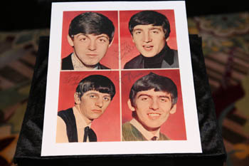日前在澳門舉辦的好萊塢“傳奇”巨星珍品展暨拍賣會展示的披頭士簽名宣傳像!⌒氯A社發(fā)(張金加/攝) |