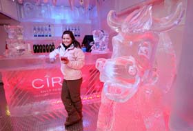 一名女子在澳大利亞墨爾本的首家冰吧里享用雞尾酒。這座酒吧里的座椅、吧臺(tái)等設(shè)施由30多噸的冰雕刻而成,連酒杯也由冰做成。顧客花費(fèi)22.5美元便可以在零下12攝氏度的氣溫里待上半小時(shí),坐在鋪有袋鼠皮的凳子上享用一杯免費(fèi)的伏特加或雞尾酒。