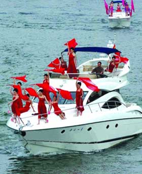 浙江省淳安縣推出一項政策,鼓勵中高檔游艇落戶千島湖。雖然尚在籌建階段,但此舉引起各方關(guān)注。有人批評,如此為富人服務(wù),是政府行政錯位的體現(xiàn);此舉將大大侵占千島湖作為國家風(fēng)景旅游區(qū)的公眾資源,并給水域帶來污染。圖為千島湖國際游艇展上的“游艇模特秀”。