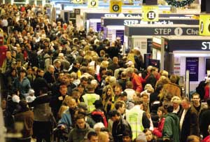 12月21日,大量旅客滯留在希斯羅機(jī)場(chǎng)。由于倫敦遭遇大霧,英國航空公司已取消了從該機(jī)場(chǎng)起飛的約180個(gè)航班。CFP供圖 |