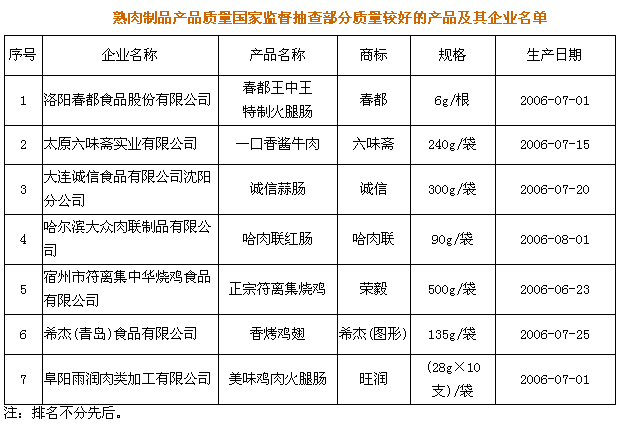 國家質(zhì)檢總局日前組織對熟肉制品產(chǎn)品質(zhì)量進(jìn)行了國家監(jiān)督抽查。共抽查了北京、天津、河北、山西、遼寧、黑龍江、山東、上海、江蘇、浙江、安徽、福建、江西、河南、湖北、湖南、廣東等17個(gè)省、直轄市103家企業(yè)生產(chǎn)的125種產(chǎn)品,產(chǎn)品抽樣合格率為80%。