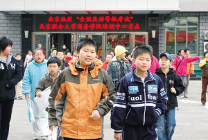 3月24日至25日,是2007年全國英語等級考試上半年考試的日子。24日早上7點半,記者來到北京聯(lián)合大學(xué)商務(wù)學(xué)院培訓(xùn)中心考點。雖然9點才開考,但已有考生陸續(xù)到來,記者看到考生大多是10歲左右的孩子,在家長的陪同下來參加考試,考場前的校園的空地被家長們圍得水泄不通。檢驗考試證件的監(jiān)考老師告訴記者,該考點小學(xué)生考生占了80%以上,還有一些中學(xué)生。 上小學(xué)四年級的劉超告訴記者,他參加的是二級考試。他從小學(xué)一年級起就開始學(xué)習(xí)英語了,參加公英考試是父母的意思。他抱怨地說:“整天都在學(xué)習(xí),根本沒有時間玩”。 小學(xué)三年級的朱雅麗也是參加二級考試的,這已是她第二次參加二級考試了。她對記者說,除了平常的上學(xué),她要額外學(xué)習(xí)公共英語和奧數(shù),還要每天彈鋼琴。她說考試內(nèi)容有些看不懂,只好用輔導(dǎo)班學(xué)到的一些技巧答題。她也不想學(xué),但媽媽說,考重點中學(xué),沒有英語等級證,連參加考試的資格也沒有,只好硬著頭皮學(xué)了。 10點半左右,臨近考試結(jié)束,記者又趕到北京市財經(jīng)學(xué)?键c,同樣看到考生中大多為小學(xué)生。記者電話采訪了北京市教育考試指導(dǎo)中心,考試科的王老師告訴記者,這次北京報名參加3月份考試的有4.8萬人左右,其中小學(xué)生考生至少在一半以上。她說,近來小學(xué)生考生呈現(xiàn)快速增長的勢頭,在所有考生中所占的比例越來越大,報考的級別也越來越高。