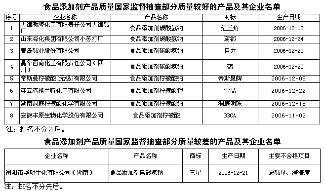 為維護(hù)廣大消費(fèi)者的合法權(quán)益,促進(jìn)行業(yè)健康發(fā)展,國(guó)家質(zhì)檢總局組織對(duì)食品添加劑中的碳酸氫鈉和檸檬酸及其鹽類產(chǎn)品質(zhì)量進(jìn)行了國(guó)家監(jiān)督抽查,共抽查了40家企業(yè)生產(chǎn)的41種產(chǎn)品,產(chǎn)品平均抽樣合格率為87.8%。