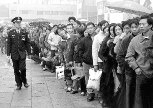 買房排隊(duì) 人物:市民柳先生 排隊(duì)時(shí)間:兩天兩夜 柳先生早在上個(gè)月就看中了位于南京東郊麒麟鎮(zhèn)某樓盤的一套房子。柳先生知道房源緊俏,因此在沒有正式開盤前就早早排號(hào)。 但是,4月15日,南京出臺(tái)“新十條禁令”,不允許開發(fā)企業(yè)在取得《商品房預(yù)售許可證》前提前排號(hào)。于是開發(fā)商通知柳先生原來的排號(hào)作廢,必須在開盤當(dāng)天來排隊(duì)才視為有效。 “這個(gè)樓盤是4月22日開盤,可是4月19日就有人開始排隊(duì)了!绷壬春玫姆孔涌刹幌虢o別人買去了。于是,他托朋友,想方設(shè)法找來一個(gè)農(nóng)民工替自己排隊(duì)!芭艃商靸梢沟年(duì),給了200塊”,柳先生雖然心疼那200塊錢,卻也放不下看好的房子。當(dāng)然,別人排隊(duì)自己怎么也不放心,柳先生這兩天兩夜也沒有睡好,經(jīng)常要去現(xiàn)場(chǎng)看看。要知道“有的農(nóng)民工排了隊(duì)就不給‘雇主’房號(hào),然后房號(hào)都炒到1000塊錢了!