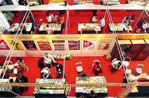 4月25日,主題為“倡導(dǎo)全民閱讀,建設(shè)和諧文化”的第十七屆全國(guó)書市(全國(guó)圖書交易博覽會(huì))在重慶國(guó)際會(huì)展中心開幕。本屆書市展位1444個(gè),共有1600多家單位出版的21.5萬種圖書和4.5萬種電子音像制品參展。圖為書市展廳一角。