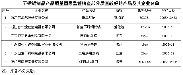 為維護消費者的合法權(quán)益,促進不銹鋼制品行業(yè)健康發(fā)展,國家質(zhì)檢總局組織對不銹鋼制品產(chǎn)品質(zhì)量進行了國家監(jiān)督抽查,共抽查了廣東、福建、浙江、上海等4個省、直轄市30家企業(yè)生產(chǎn)的30種不銹鋼制品,其中不銹鋼器皿28種,不銹鋼餐具2種,產(chǎn)品抽樣合格率為83.3%。