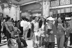等待吃烤鴨的客人擠滿了全聚德和平門(mén)店的大廳,有的只好蹲在地上,有的都擠到大門(mén)口來(lái)了。烤鴨真的這么好吃嗎?全聚德真的有這么高的品牌價(jià)值嗎? | 4月30日 車票難買(mǎi)心情急
