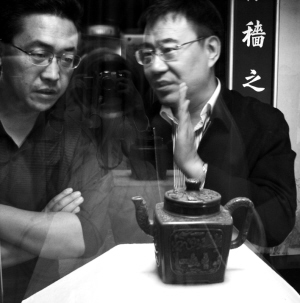 “紫泥清韻——故宮博物院藏宜興紫砂展”近日在故宮齋宮舉辦,展品是從近400件明清皇家紫砂茗壺、茶具、文房清供、花盆、陳設(shè)瓷等故宮藏品中遴選出的110多件(套)具有代表性作品,為外界罕見。據(jù)悉,展覽將持續(xù)到10月31日。圖為觀眾在欣賞一件紫砂胎雕漆四方壺。