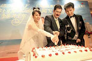 昨天(6日),土耳其駐華大使館文化新聞處宣布,明天至8月15日,將舉辦“情濃土耳其,今生共千年”免費(fèi)蜜月游活動。 凡在此期間領(lǐng)取結(jié)婚證的新婚夫婦,登錄活動官方網(wǎng)站,上傳雙人甜蜜照片,并用文字?jǐn)⑹鲎约壕实摹皭矍楣适隆,都有可能在9月30日至10月6日一周時(shí)間內(nèi),免費(fèi)在土耳其度過一段柔情蜜意的美好時(shí)光。 圖為土耳其駐華大使館文化參贊歐盛瑞(中)在發(fā)布會現(xiàn)場與一對新人共切婚禮蛋糕,啟動土耳其蜜月游。 | |