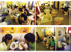 | 深圳食客在廁所餐廳吃得津津有味 | 隨著物質(zhì)生活的條件越來越好,人們對“吃”的要求,已經(jīng)不僅僅停留在食物本身。用餐,已經(jīng)從一種物質(zhì)享受提升到精神享受。南京一些餐館開始從“吃環(huán)境”、“吃個性”、“吃特色”中尋覓商機(jī)。這些餐廳還真有點(diǎn)另類的“文化味道”。