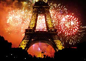 7月14日,法國(guó)巴黎舉行盛大的焰火表演,慶祝法國(guó)國(guó)慶日。1789年,法國(guó)爆發(fā)大革命。7月14日,巴黎民眾攻克象征封建專制的巴士底獄。1880年,法國(guó)議會(huì)通過(guò)法律,將7月14日定為法國(guó)國(guó)慶日。
