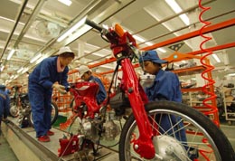 重慶某民營摩托車企業(yè)繁忙的生產(chǎn)線。 | 發(fā)展戰(zhàn)略:構(gòu)建“一圈兩翼”