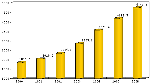 初步核算,2006年全省生產(chǎn)總值4746.5億元,按可比價格計算,比上年增長11.8%。其中,第一產(chǎn)業(yè)增加值276.6億元,增長5.1%,對GDP增長的貢獻率為2.7%;第二產(chǎn)業(yè)增加值2742.5億元,增長15.3%,貢獻率為72.9%;第三產(chǎn)業(yè)增加值1727.4億元,增長7.7%,貢獻率為24.4%。第三產(chǎn)業(yè)中,金融保險業(yè)增加值138.3億元,增長11.3%;批發(fā)和零售業(yè)增加值295.6億元,增長11.8%;房地產(chǎn)業(yè)增加值118.1億元,增長9.2%。人均生產(chǎn)總值14106元,按2006年平均匯率計算達到1808美元。