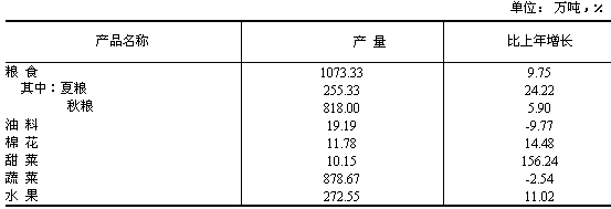 全年全省農(nóng)作物總播種面積382.3萬公頃,比上年增加2.8萬公頃,增長0.7%。其中糧食作物種植面積為312.2萬公頃,增長2.9%,在糧食作物種植面積中,高產(chǎn)作物玉米的種植面積達到122.6萬公頃,增長3.5%。 糧食總產(chǎn)量達到1073.3萬噸,比上年增產(chǎn)9.8%,是我省歷史上的第3個高產(chǎn)年。其中,夏糧總產(chǎn)255.3萬噸,增產(chǎn)24.2%;秋糧總產(chǎn)818.0萬噸,增產(chǎn)5.9%。