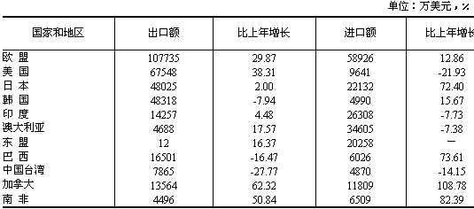 表7:2006年對主要國家和地區(qū)進出口情況