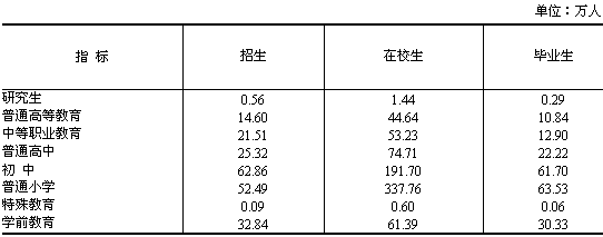 表11:2006年各類教育發(fā)展情況