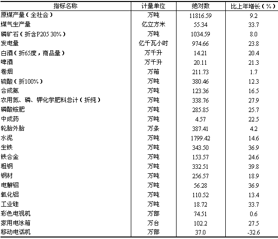 2006年,全省37個(gè)工業(yè)行業(yè)大類中,實(shí)現(xiàn)增加值在10億元以上的有10個(gè)行業(yè)。電力工業(yè)作為第一大支柱行業(yè)所發(fā)揮的作用表現(xiàn)更加突出,電力、有色冶金、黑色冶金、飲料和化工五大行業(yè)對(duì)全省工業(yè)增長合計(jì)貢獻(xiàn)率達(dá)到73.1%。發(fā)電量、飲料酒、粗鋼、工業(yè)硅、鐵合金、合成氨等主要工業(yè)產(chǎn)品產(chǎn)量增長較快。 工業(yè)經(jīng)濟(jì)效益大幅度提高。全年規(guī)模以上工業(yè)經(jīng)濟(jì)效益綜合指數(shù)為169.95,比上年提高21.72點(diǎn)。規(guī)模以上工業(yè)企業(yè)盈虧相抵后實(shí)現(xiàn)利潤117.35億元,比上年增長64.1%,其中,國有及國有控股企業(yè)實(shí)現(xiàn)利潤96.01億元,比上年增長57.2%。 非公有制工業(yè)經(jīng)濟(jì)繼續(xù)保持快速增長。全年規(guī)模以上工業(yè)非公有經(jīng)濟(jì)實(shí)現(xiàn)增加值比上年增長24.3%,增速高于規(guī)模以上工業(yè)6.8個(gè)百分點(diǎn);規(guī)模以上工業(yè)非公有經(jīng)濟(jì)完成工業(yè)總產(chǎn)值占全部規(guī)模以上工業(yè)總產(chǎn)值的35.2%。