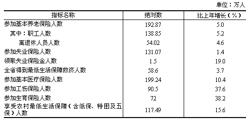 社會(huì)保障水平不斷提高。“兩個(gè)確!睂(shí)現(xiàn)100%后繼續(xù)得到鞏固,完善了以基本養(yǎng)老、基本醫(yī)療、失業(yè)、工傷和生育保險(xiǎn)為主要內(nèi)容的社會(huì)保障體系,覆蓋面進(jìn)一步擴(kuò)大。
