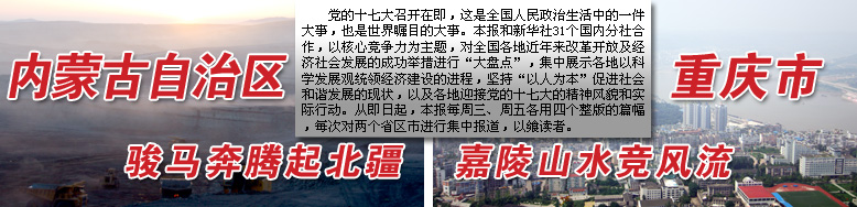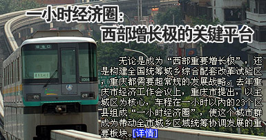 “西部地區(qū)的重要增長(zhǎng)極、長(zhǎng)江上游地區(qū)的經(jīng)濟(jì)中心、城鄉(xiāng)統(tǒng)籌發(fā)展的直轄市”,這是今年3月胡總書記為重慶發(fā)展的“導(dǎo)航定向”。 6月,重慶再獲驚喜,與成都一起獲準(zhǔn)建立全國(guó)統(tǒng)籌城鄉(xiāng)綜合配套改革試驗(yàn)區(qū),[詳情] | |