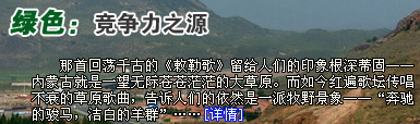 | 7月的草原,如盛妝的新娘。內(nèi)蒙古2400多萬(wàn)各族群眾翹首等待著一個(gè)盛典——自治區(qū)成立60周年大慶。在迎接慶典到來(lái)的日子里,在感受身邊日新月異的變化中,內(nèi)蒙古各族群眾無(wú)比自豪:今天的內(nèi)蒙古如駿馬騰驤,其勢(shì)欲飛。[詳情] | |