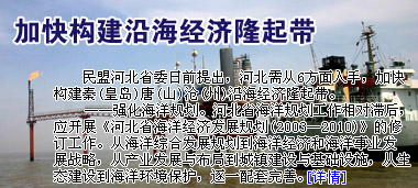 | 河北要實(shí)現(xiàn)建設(shè)沿海經(jīng)濟(jì)社會發(fā)展強(qiáng)省的目標(biāo),發(fā)揮區(qū)位優(yōu)勢是關(guān)鍵。河北省區(qū)位優(yōu)勢何在?如何將優(yōu)勢轉(zhuǎn)化為生產(chǎn)力?如何處理好區(qū)域經(jīng)濟(jì)發(fā)展中的各種關(guān)系?帶著這些問題,記者采訪了中國人民大學(xué)區(qū)域經(jīng)濟(jì)與城市管理研究所教授孫久文。[詳情] | |
