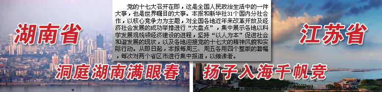 黨的十六大以來,湖南省經(jīng)濟社會呈現(xiàn)出"又好又快"的蓬勃發(fā)展態(tài)勢。湖南省統(tǒng)計局局長劉國湘在接受本報記者專訪時認為,巨變來自于十六大以后湖南兩次發(fā)展思路轉(zhuǎn)變。 第一次轉(zhuǎn)變是湖南省第八次黨代會上提出的,是湖南第一次思路轉(zhuǎn)型。變化的核心是由習(xí)慣于抓農(nóng)業(yè)向加快推進工業(yè)化、農(nóng)業(yè)產(chǎn)業(yè)化和城鎮(zhèn)化的"三化"進程轉(zhuǎn)變。[詳情] | |