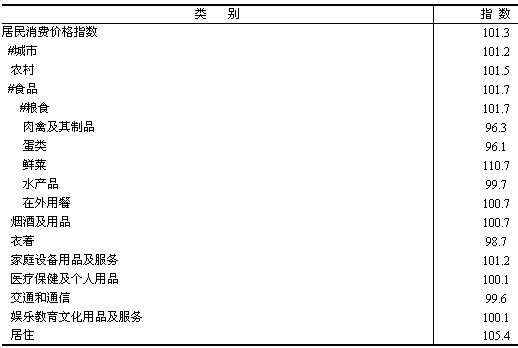 表1:2006年全省居民消費價格指數(shù) (以上年同期為100)