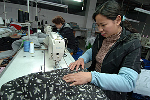 | 幾位工人在服裝廠內(nèi)制作服裝。如今越來(lái)越多的農(nóng)業(yè)剩余勞動(dòng)力正在向非農(nóng)領(lǐng)域轉(zhuǎn)移。本報(bào)記者 王定昶