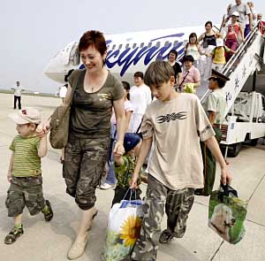 7月29日,一架滿載俄羅斯游客的圖-154飛機(jī)降落在山海關(guān)機(jī)場,秦皇島首條國際航線開通。據(jù)悉,明年奧運(yùn)會(huì)前,山海關(guān)機(jī)場還將開通日、韓等多條國際航線。CFP圖片