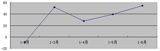 圖2 2007年1-6月新增固定資產(chǎn)增長情況(%)