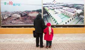 長春市二道區(qū)居民在觀看棚戶區(qū)改造的對比圖。 |