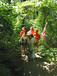 行進(jìn)在小興安嶺林區(qū)的游客。本報(bào)記者:孫英威 攝