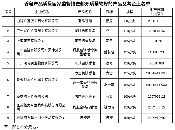 為了維護(hù)消費(fèi)者的合法權(quán)益,促進(jìn)香皂行業(yè)健康發(fā)展,國家質(zhì)檢總局組織對香皂產(chǎn)品質(zhì)量進(jìn)行了國家監(jiān)督抽查,共抽查了北京、天津、吉林、上海、江蘇、安徽、浙江、湖南、湖北、河南、山東、廣東、貴州、廣西、重慶等15個省、直轄市、自治區(qū)32家企業(yè)生產(chǎn)的50種產(chǎn)品(不涉及出口產(chǎn)品),產(chǎn)品實物質(zhì)量合格率為96%。