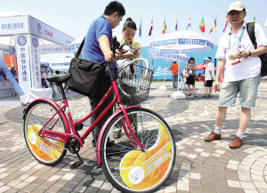 昨天(8日),“好運北京”2007賽艇世青賽賽場組委會為運動員、教練員和賽場工作人員準備了場內(nèi)環(huán)保自行車。