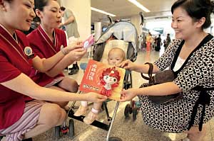 南航北京分公司昨天(8日)宣布,“五彩中國-南航行”北京站活動正式啟動。從8月8日至今年年底,南航北京-廣州、深圳,北京-海口、三亞往返航線機票實施“一票通”。 凡旅客購買8折(含)以上散客客票,在廣州至北京、深圳至北京、北京至廣州、北京至深圳單程或往返程航線,可將始發(fā)地或目的地的廣州和深圳進(jìn)行互換;凡旅客購買5折(含)以上散客客票,在海口至北京、三亞至北京、北京至?、北京至三亞單程或往返程航線,可將始發(fā)地或目的地的?诤腿齺嗊M(jìn)行互換。航班互換不收取任何更改費用。 圖為南航工作人員在首都機場向旅客送上“福娃”禮品。 | |