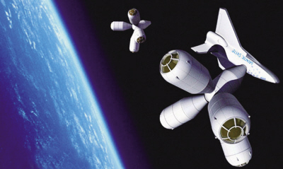 美國(guó)www.space.com網(wǎng)站近日?qǐng)?bào)道,世界上第一個(gè)太空旅館有望在2012年建成。屆時(shí),太空迷們可以花400萬美元在這里住3天。這是“銀河套房酒店”的效果圖。