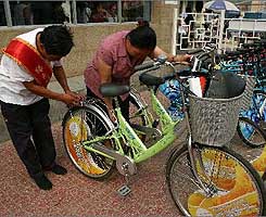 奧運會前,北京市將建立200個自行車租賃點,推行自行車全城聯(lián)網、異地存取的租賃業(yè)務,投入的公共自行車將達50000輛。——不僅僅因為奧運會,我們才需要便捷的城市公共交通,也不僅僅是北京,才需要改善城市公共交通![詳情] | |