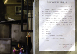 | 酒仙橋危改區(qū)到處都張貼著這一公告。本報記者 周民 攝 | 事件