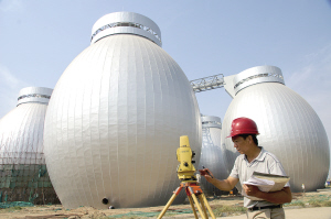 國(guó)慶前,小紅門污水處理廠內(nèi)5個(gè)銀灰色的卵形污泥消化池將完成外部裝修。市政四公司表示, 消化池將對(duì)污水處理過程中產(chǎn)生的污泥進(jìn)行消化處理,使污泥的衛(wèi)生指標(biāo)提高,減少細(xì)菌及臭氣,避免對(duì)環(huán)境造成二次污染。