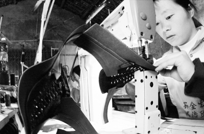 | 工人精心制作外貿(mào)出口皮鞋 |
