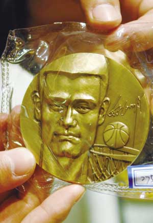 10月23日,“姚明紀念章”在北京菜百公司開始發(fā)售,這套分別用黃金、白銀和高浮雕鑄銅技術(shù)打造的紀念章,是國家造幣廠首次鑄造的體壇巨星的經(jīng)典之作。
