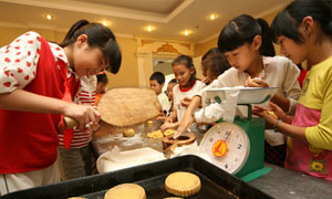 9月22日,農(nóng)村留守兒童和城里孩子一起學(xué)做月餅。中秋佳節(jié)將至,河南許昌20多名農(nóng)村留守兒童和城里孩子一起參加“相聚中秋,城鄉(xiāng)同樂(lè)”