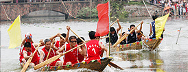 | 6月19日,農(nóng)民代表隊激烈角逐。附近九個村莊的農(nóng)民進行端午龍船賽。 |