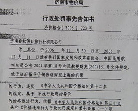 然而也是這1元機(jī)票,濟(jì)南市物價(jià)局開出的一張15萬的罰單,這張罰單不僅讓濟(jì)南市民告別了低到一元的廉價(jià)機(jī)票,同時(shí)也導(dǎo)致春秋航空退出了上海到濟(jì)南的航線。就國內(nèi)航空公司低價(jià)出售機(jī)票遭罰之后,更加讓人想不到的是,進(jìn)入國內(nèi)的外資航空公司也紛紛推出了更低的票價(jià),卻沒一家被罰。